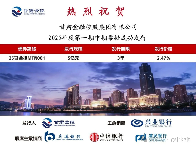 2025年6月10日,宝威手机登录入口成功发行2025年度第一期中期票据“25甘金控MTN001”,规模5亿元,期限3年,票面利率2.47%,全场倍数2.72倍,体现出市场对集团稳健经营和良好偿债能力的信心。